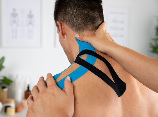 Terapia con tape hipoalergénico con propiedades magnéticas para estimular la recuperación.